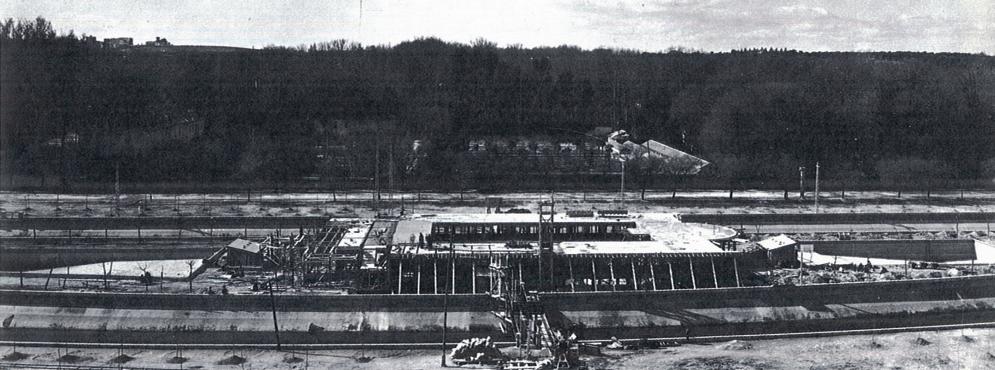 Las labores de construcción del edificio de las piscinas en los primeros años 30.